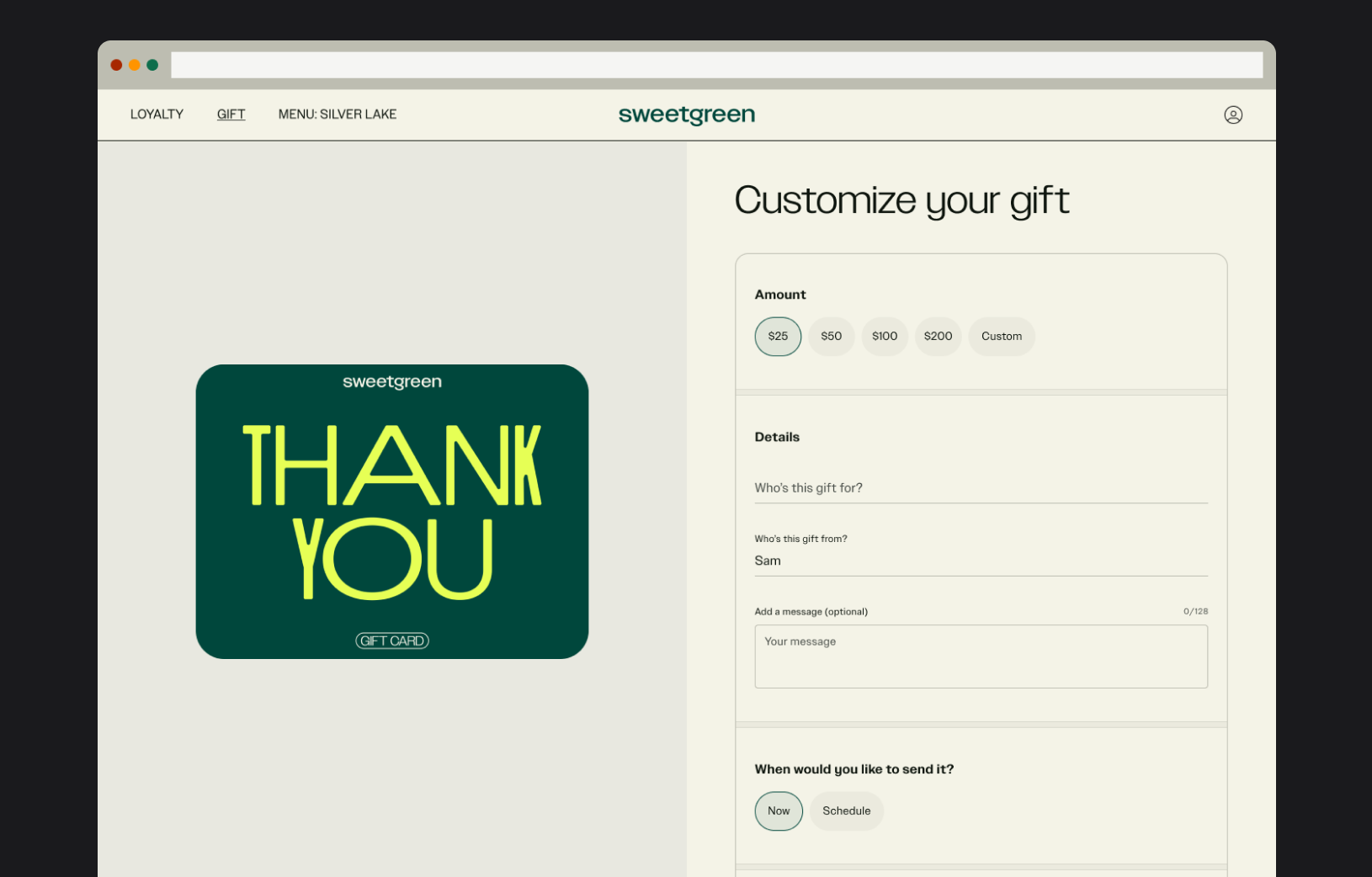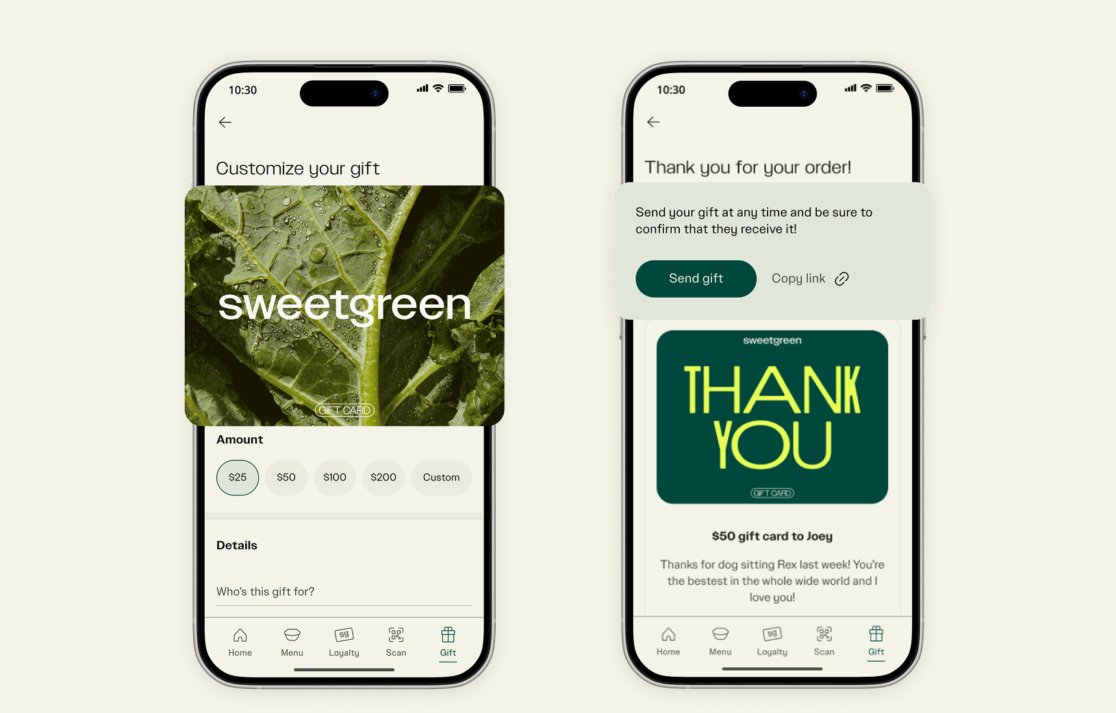 Gifting Sweetgreen made easier: All within the app, for the first time.
